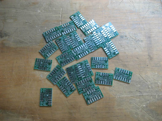 I used a band saw to cut out the serial adapter boards from the panel. Then cut out and sanded the edges on each board.